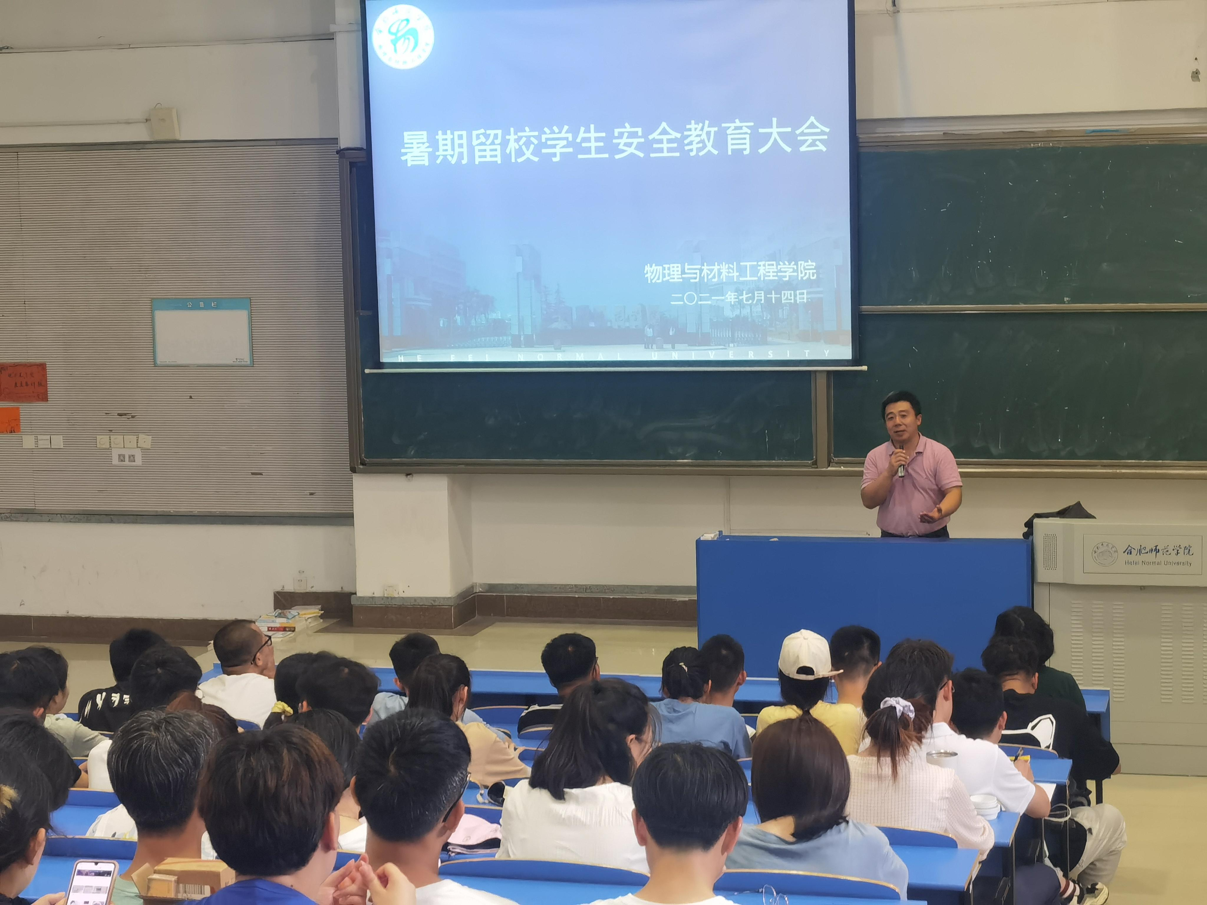 为落实学校关于加强暑期留校学生安全工作的要求,永利集团304am登录于7月14日下午在逸夫楼西阶2教室召开暑假留校学生安全教育大会。会议由辅导员吴梦云主持,学院党委书记唐洁、党委副书记吴震、辅导员赵厚德及全体留校学生参加会议。