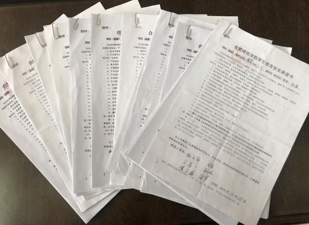 为进一步提高学生防火用电的安全意识以及普及相关学生宿舍管理规定,加强学生防火用电的安全认识,学院组织全体学生签订宿舍安全承诺书,各班同学都签订一份学生宿舍安全承诺书。