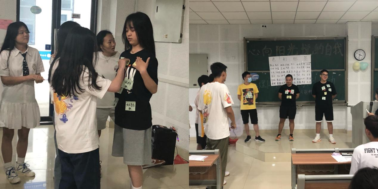 在认识自我单元,通过开展“色彩标签”活动,鼓励同学上台以贴标签的形式,接受大家对自己的评价和定义,全面了解自身的性格特征和优势缺点,并针对被形容的词汇进行自我反思和解释,进而达到认识自我、探索自我、改善人际交往的目的。