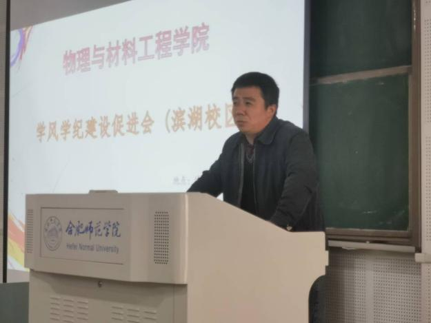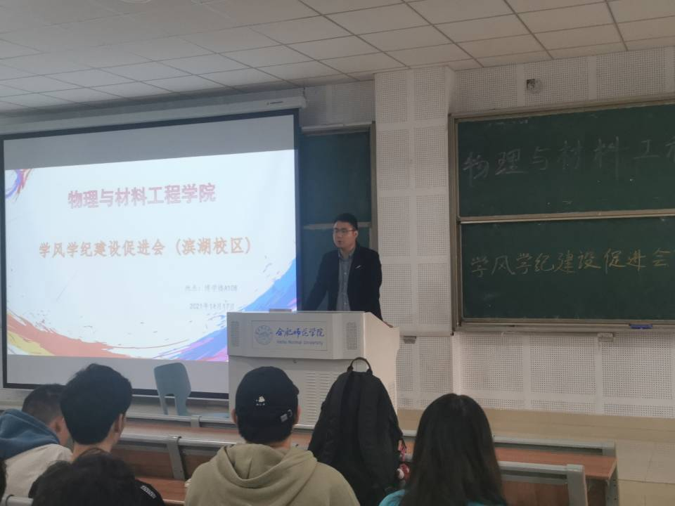吴震书记代表学院首先肯定了各级学生干部在班级管理和学风促进方面所做的努力,同时也指出了学院滨湖校区学生学习纪律方面存在的各种问题,教导同学们树立严格的纪律观念,养成良好的学习态度和习惯。最后,吴震对同学们提出三点要求:一是全体同学要树立远大理想,形成自主学习的意识,让勤奋学习成为青春远航的动力,让增长本领成为青春搏击的能量;二是学生干部要勇于担当,积极参与班级管理和学生服务,切实履行好自身职责,增强凝聚力,共同促进班级学风建设;三是学生干部要以身作则,争当模范,品学兼优,严于律己,努力奋进,为班级同学树立良好榜样,在学生之间、寝室之间形成你追我赶的学习氛围。