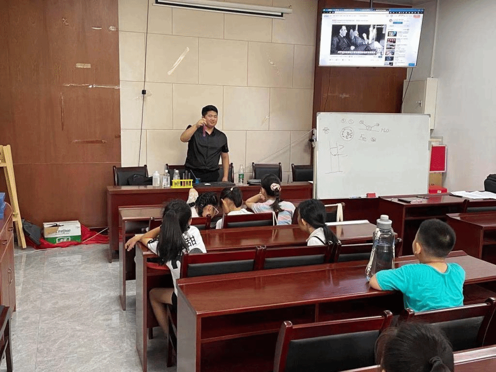 赵厚德老师介绍了我校行知学堂的发展历史和学堂宗旨,他要求小先生们树立以生为本的理念,关心关爱小学员,传播“爱满天下,知行合一”的行知文化,帮助小学员度过一个愉快充实的暑期。启动仪式结束后,席晓龙上了第一节课——科学普及。
