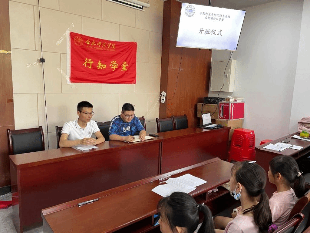 弘扬行知精神,践行行知文化,服务留守儿童,共筑青春梦想。7月9日,永利集团304am登录创办的合肥市蜀山区南艳湖行知学堂顺利开班,海恒社区南艳湖居委会协理员李向阳、指导老师赵厚德、全体“小先生”与小学员们共同参加了开班仪式。
