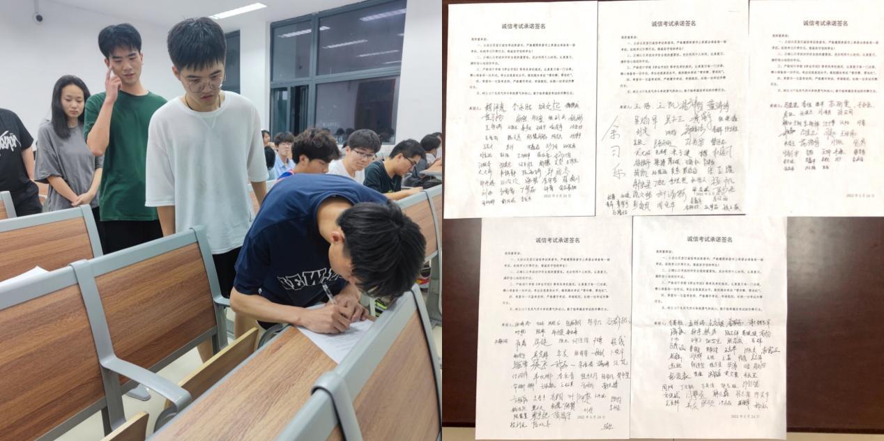 主题班会上,同学们就考风考纪以及备考方法提出了自己的看法并分享了学习经验,全体同学在《诚信考试承诺书》上庄重签名。