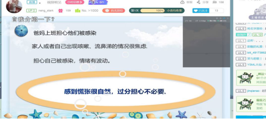 班会在短暂的寒暄后正式开始,各班心理委员从“自身”, “学习”,‘“家庭”三个方面讲述了因疫情原因学生们在家遇到的常见问题及解决方案。各位心理委员和同学们详细讲述了疫情期间控制情绪、自主学习、与家人相处等方面的相关问题,并给同学们提了一些度过家中生活的心理建议。其中,19级物理师范班朱仕能同学还和大家互相分享了在疫情期间的劳动经历。期间同学们反响热烈思维活跃,弹幕互动积极,并对心理委员所说的情况与解决方法表示肯定。