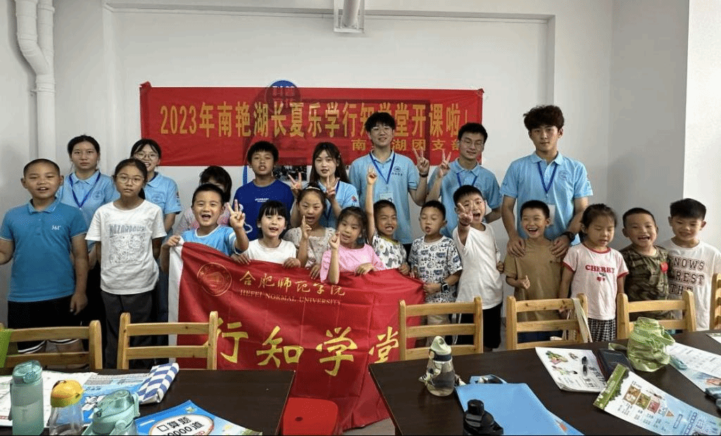 本网讯 服务留守儿童,践行行知精神,共筑青春梦想。7 月 3 日,永利集团304am登录“长夏乐行”行知学堂在海恒社区南艳湖居委会正式开班。南艳湖社区负责人程艺琳、学堂6名行知学堂小先生、全体小学员及家长共同参加了开班仪式。