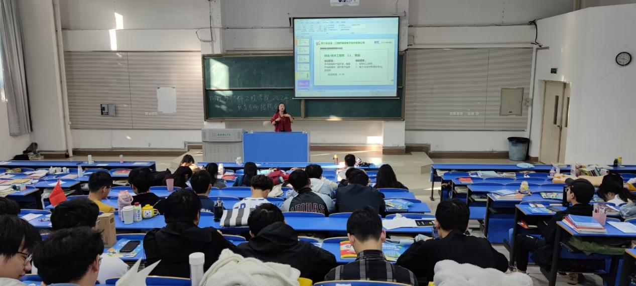 “中正创芯”产业联盟HR经理秦菁向展示向同学们介绍关于半导体行业的就业前景,企业需求、薪资待遇,同时也向同学们现场展示了简历撰写及面试的要点方法和技巧。