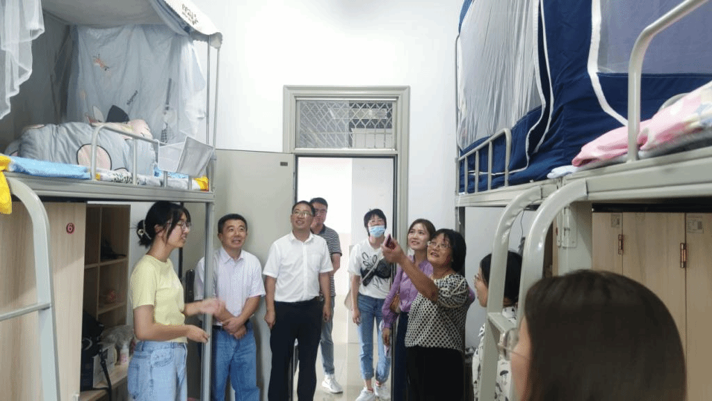当天下午,学院党委书记唐洁、党委副书记吴震、副院长訾振发与新生辅导员吴梦云、辅导员费文清、行政秘书王利华及相关老师一行来到滨湖校区学生宿舍4号楼、6号楼,走访、看望刚入住的新生,为新生送去全院师生的关心与期待。