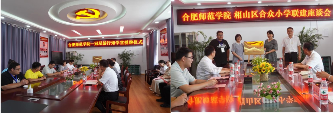 结业仪式间隙,唐洁一行和相山区教育局副局长邢诚诚、合众小学校长李良浩等相关负责同志进行了座谈,并为“冠星游”行知学堂授牌。唐洁代表学院感谢相山区教育局和合众小学给予的支持与帮助,简要介绍了我校“行知学堂”实践活动的宗旨与特色,邢诚诚对“小先生”们的真诚努力表示肯定,对“行知学堂”的做法与成效大为赞赏。双方就扩大“行知学堂”实践平台、留守儿童服务活动和校本教材开发等方面的合作问题进行了深度交流。(永利集团304am登录:费文清 张飞)