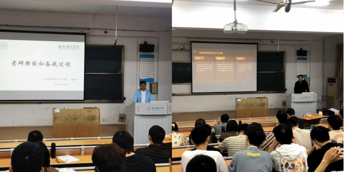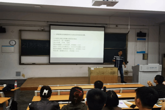 孟强强老师围绕考研规划和目标方向,从研究生招考的基本情况和历年形势出发,讲解了考研的专业院校选择、科目复习重点和阶段规划目标,他告诫考研对人生价值实现和磨炼个人意志等方面的重要意义,鼓励同学们排除干扰,沉心静气,认真学习,积极奋斗。