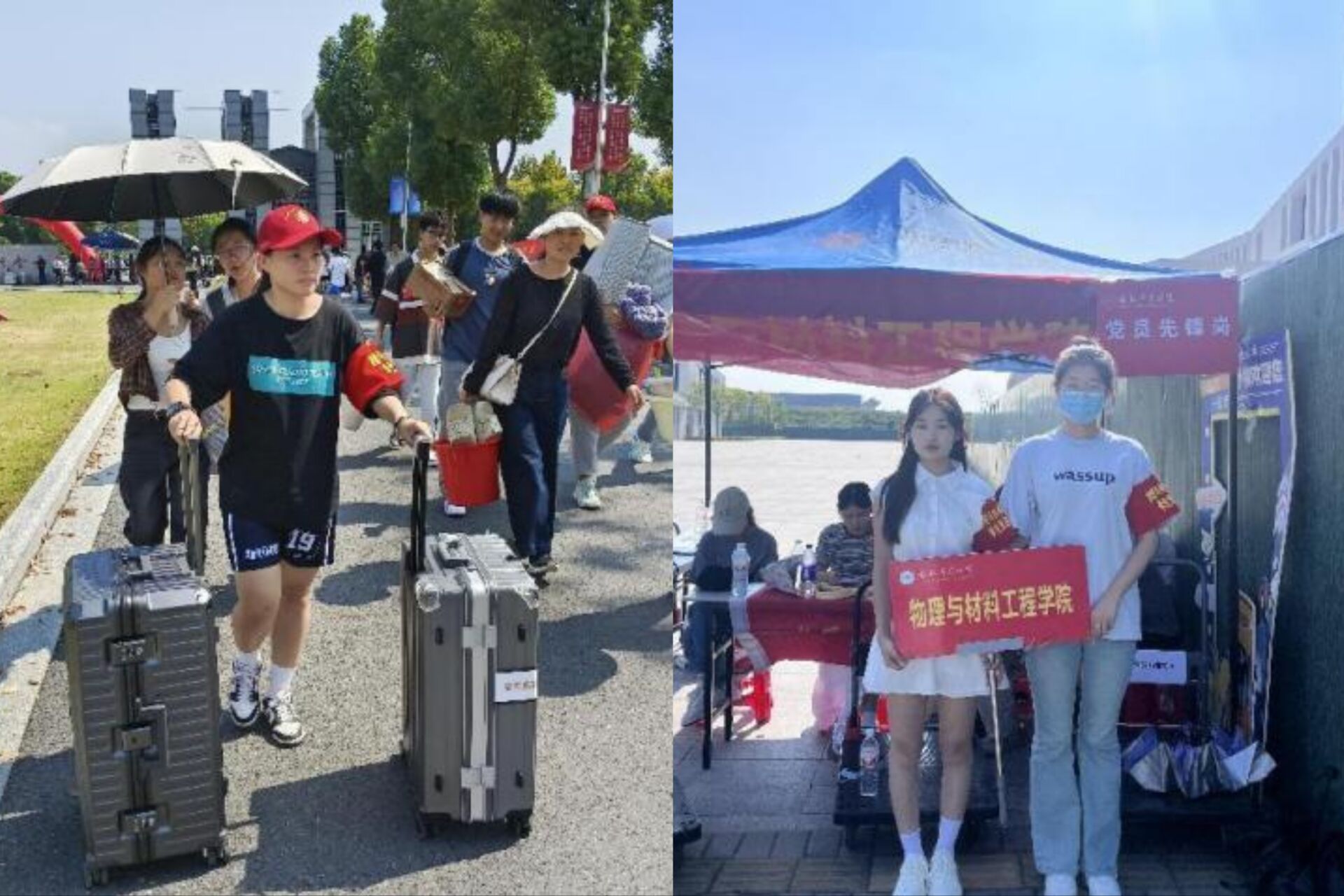 清晨七点半,党员志愿者们已经到达迎新岗位,他们提前做好充分准备,熟悉迎新流程。在学校大门、博约楼报到点、新生宿舍处的工作岗位上,教工、学生党员不畏高温,引领新生穿梭在道路指引、行李搬运、报到登记的各个角落。他们的身影成为了校园里一道亮丽的风景线,用实际行动诠释了“一名党员就是一面旗帜”。