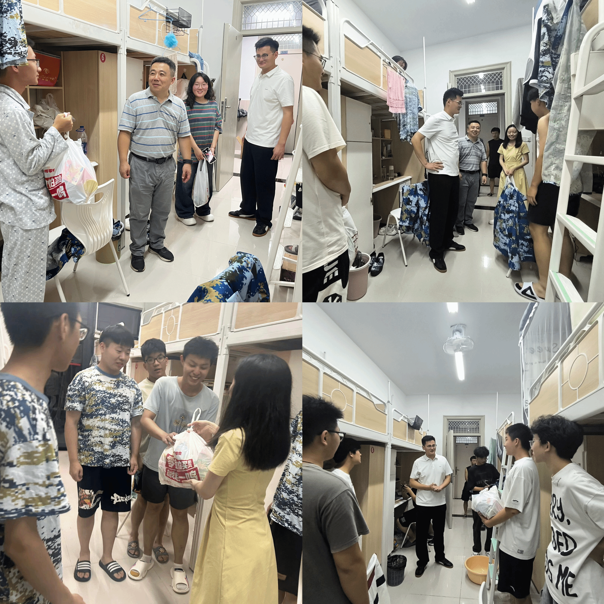在将精心选购的中秋慰问品送到每一位宿舍的学生手中的同时,老师们建议大家通过电话或视频通话的方式,向父母表达节日的祝福。他反复提醒同学们要遵守安全规范,防患于未然。温暖的叮嘱让学生感到惊喜和感动,亲切的笑容洋溢在师生的脸上。