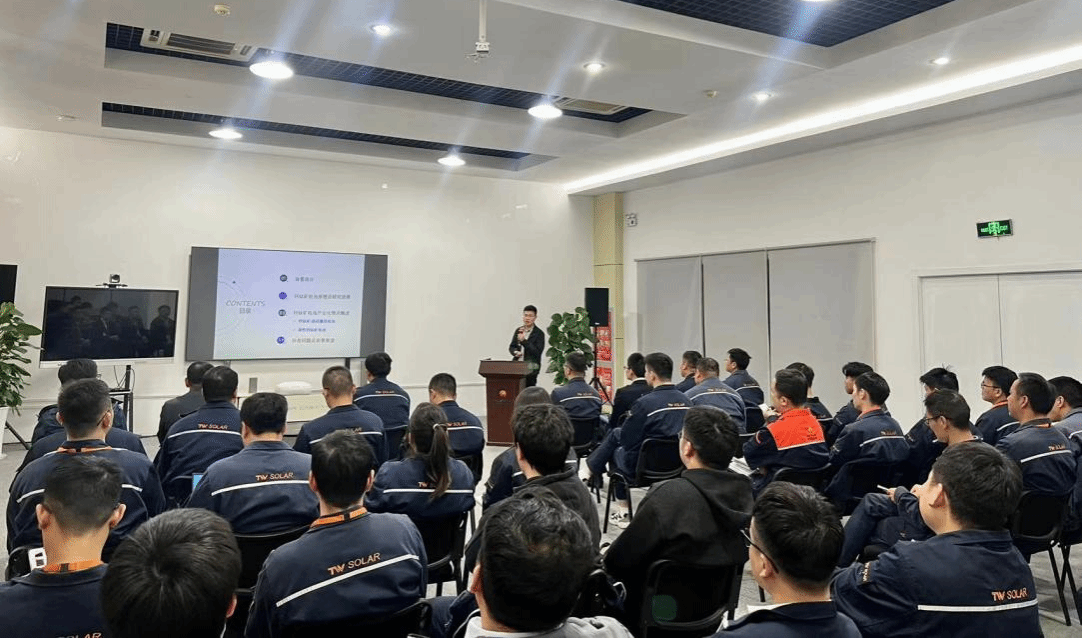为推动产教融合、校企合作,发挥高校人才优势,服务地方经济社会高质量发展,永利集团304am登录近期组织专业教师赴通威太阳能科技有限公司开展“阳光课堂”系列专题讲座。10月24日下午,曹晨泰老师在生产一线为企业工程师们做主题是“钙钛矿太阳能电池研究进展及产业化概述”的专题报告。